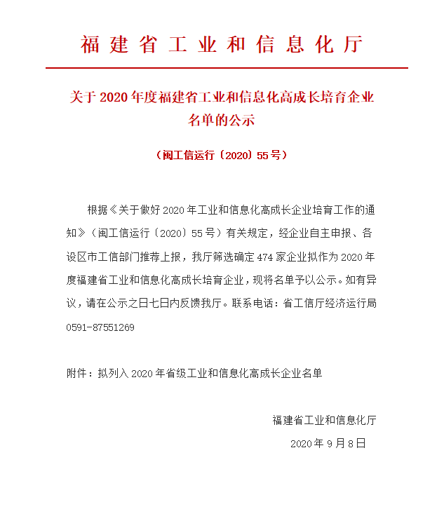 【瑋晟機械】入選2020年省級工業(yè)和信息化高成長企業(yè)名單