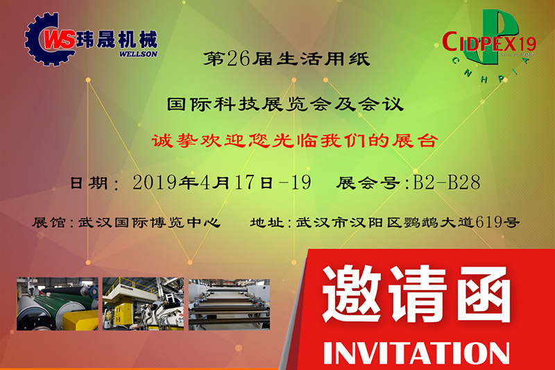 瑋晟機(jī)械誠(chéng)摯邀請(qǐng)您參加2019年武漢生活用紙-展位號(hào):B2B28