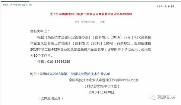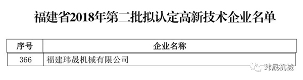 【福建瑋晟機械】熱烈祝賀我司通過國家高新技術企業